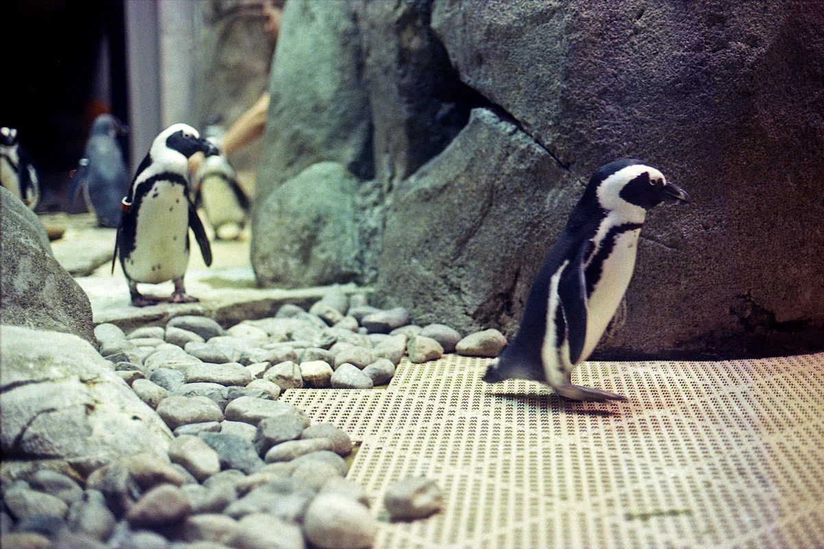 Had I known then what I know now, I probably would have pushed the film a stop, or even tried to find a faster film speed to shoot with, but I had already loaded the film and made an exposure or two. So, at 400 ASA, it was extremely difficult to capture these photos in such dim lighting of our first stop--and indoor aquarium--and for many of the ones coming up, my in-camera light meter indicated that these would all have been horribly underexposed, but the latitude of color negative film never ceases to amaze me. Also, luckily, I had my Canon nFD 50mm ƒ/1.4 lens with me, and I shot wide open for many of them. ;)